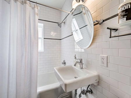 Two elegantly furnished bedrooms await to deliver a restful night's sleep. Freshen up for the next day's adventure in the floor-to-ceiling tiled custom bathroom featuring a vintage tub and sink.