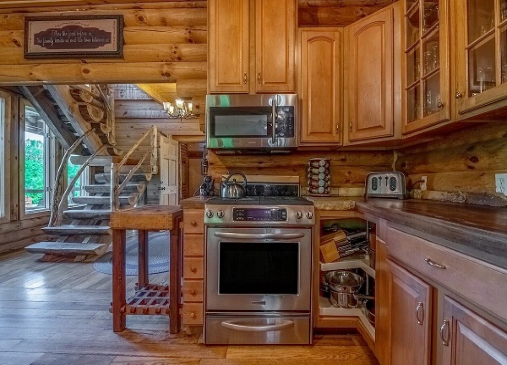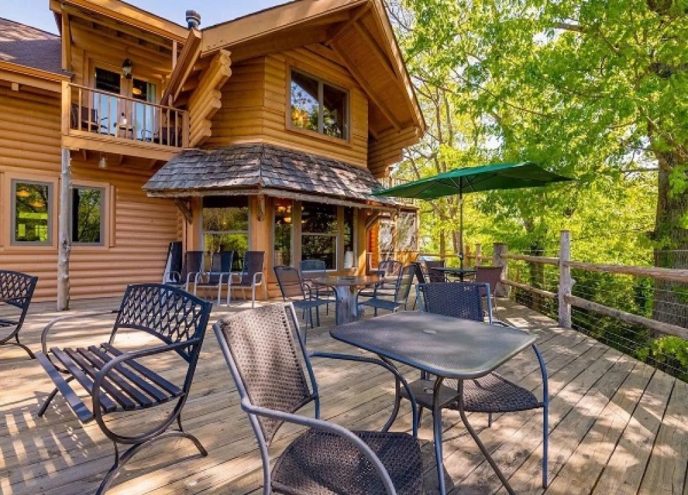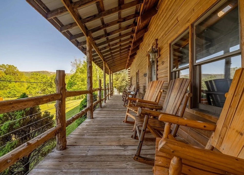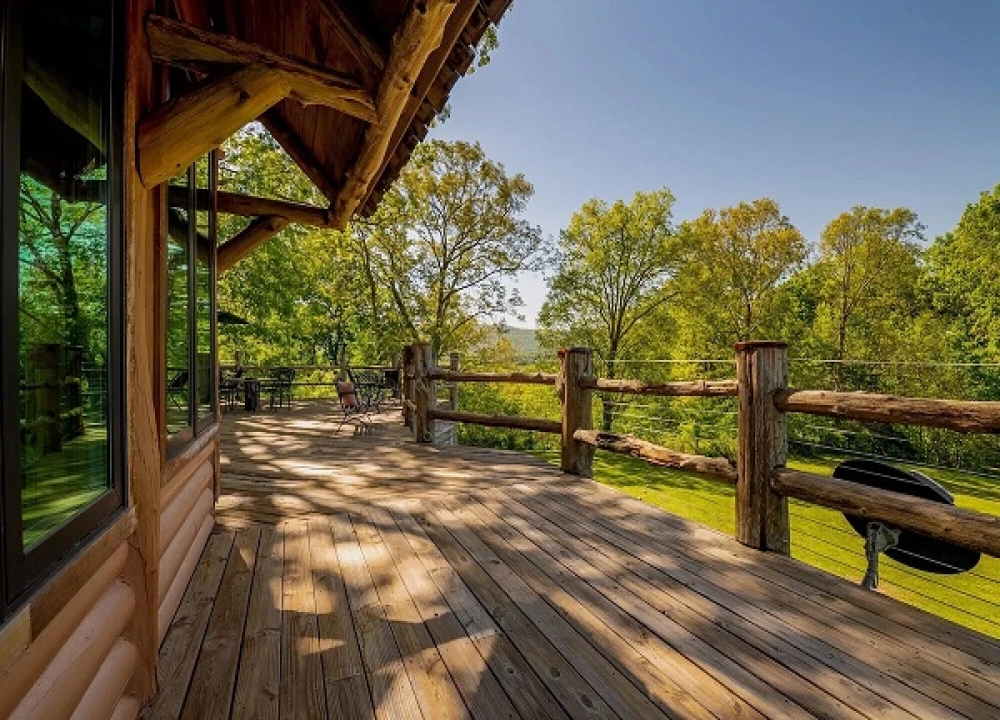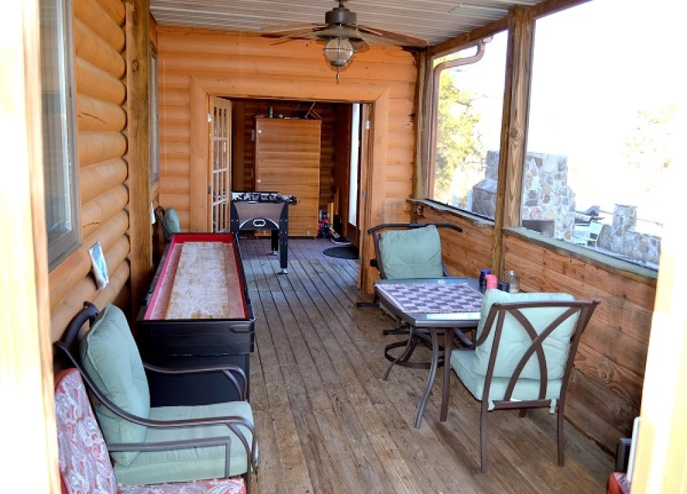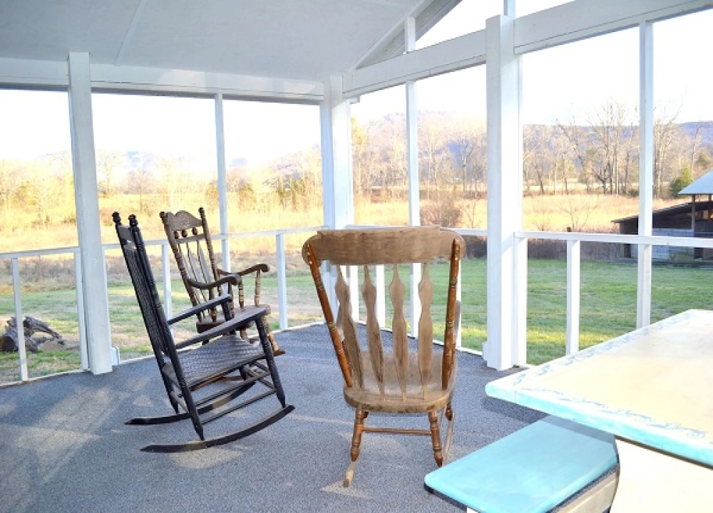 The lodge has over 2,500 sq. ft. of decks and porches so no matter what time of day it is you can find some shade or sun to relax in a rocker or chair. The covered front porch is great if it's raining to listen to the rain on the metal roof or to watch the sun set over Lookout Mountain. The back screened in porch is awesome to enjoy birdwatching or listening to the sounds of nature. The enclosed porch has the foosball table and sauna and outdoor game equipment and the 3 balcony decks are great for a morning cup of coffee to start your day. The large side deck has incredible views year round as you can see to the end of the cove.