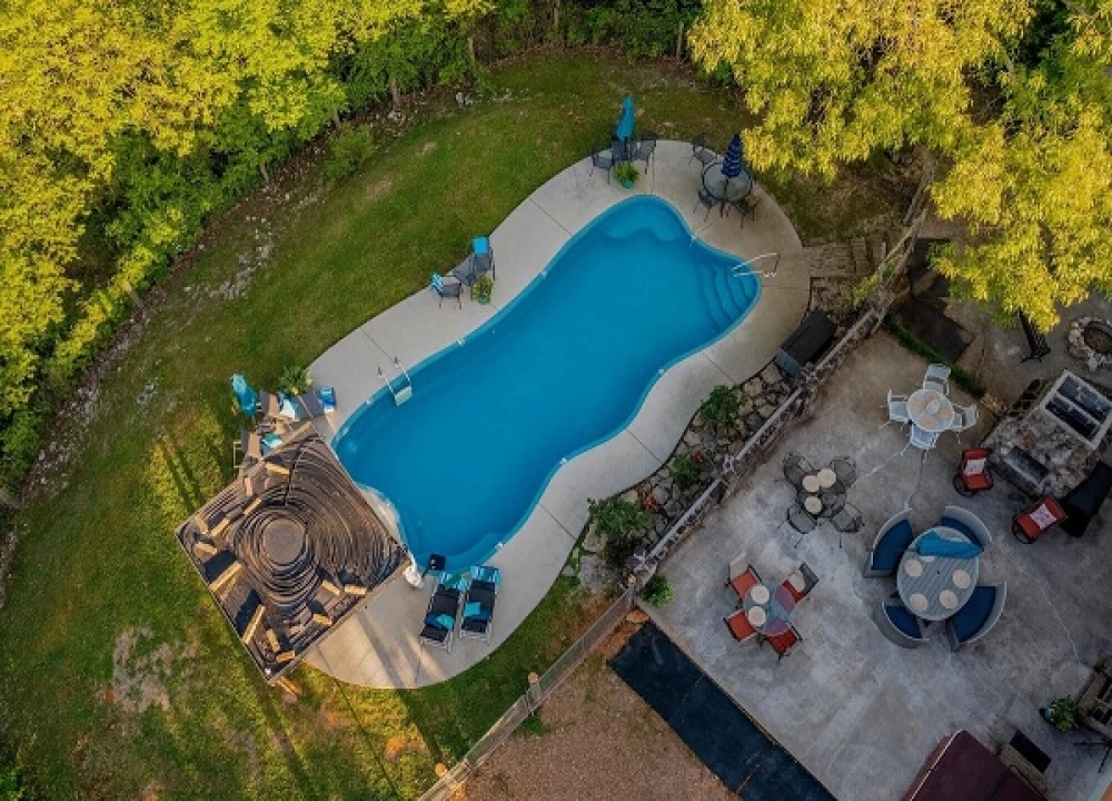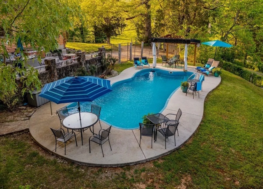 The back patio has the hot tub and leads to the 36 ft inground pool that is exclusively for your use. The pool is the place to be for all ages either wearing out the young ones or relaxing for the older ones. Also in the back is the fire pit and outdoor fireplace which provide endless hours of memories while relaxing and roasting marshmallows.
