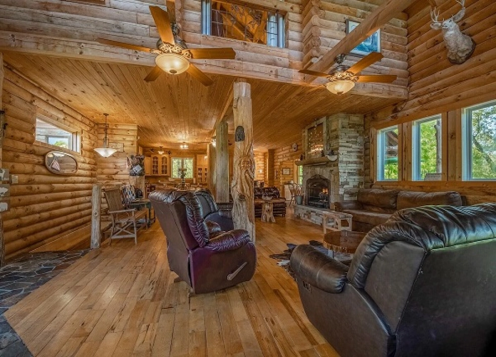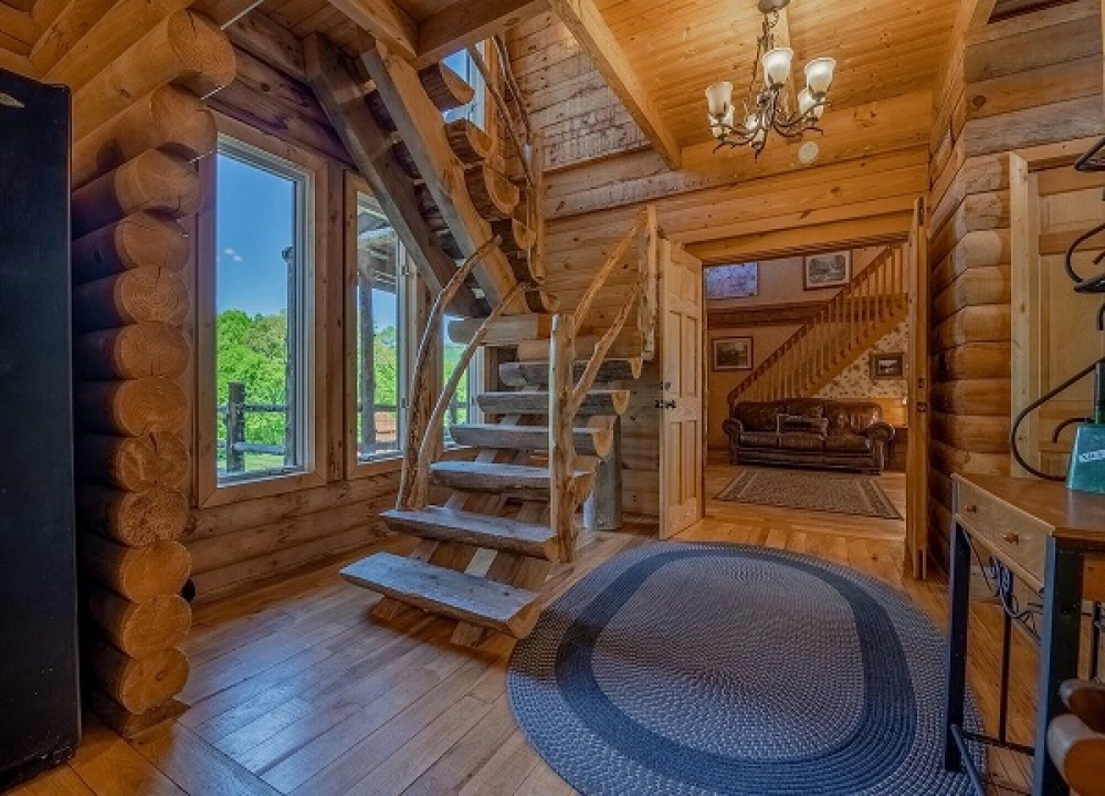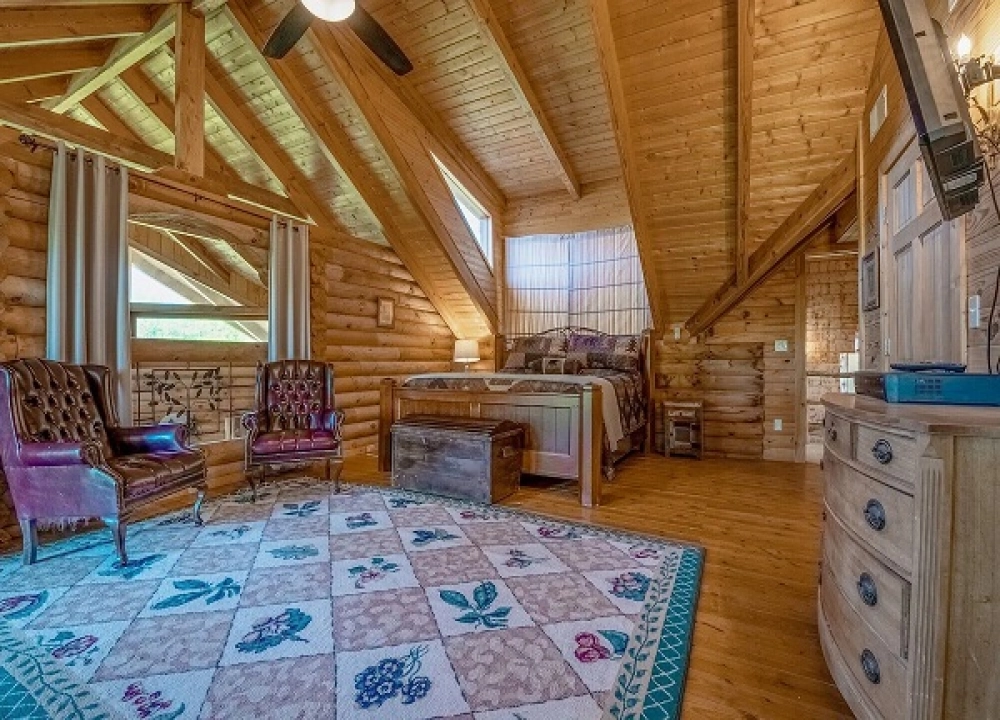The Lodge of McLemore's Cove is a custom built 6,000 square foot log home that has many unique features that will make your stay memorable. The 28 ft. cathedral ceilings and the massive 10 foot front doors are a glimpse into what is in store for our guests. Gorgeous mountain views in all directions and unheard of privacy make this a place that seems to have been untouched by time. The Lodge sits atop a ridge with Lookout Mountain 2 miles to the west and Pigeon Mountain 2 miles to the east and the end of the McLemore's Cove 5 miles to the south. The early risers can watch the sun peek over Pigeon Mountain and everyone can watch the beautiful sunsets over Lookout Mountain. And the best is yet to come as once the sun sets the spectacular night sky puts on a show that is breathtaking. If you love nature's beauty then you will be at home here and if you enjoy real log homes this is the place for you. If you want the big city and parking lots then you may have a change of heart after your visit. Whatever your preferences we will welcome you to a beautiful log home that is in a gorgeous setting.