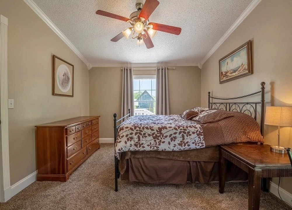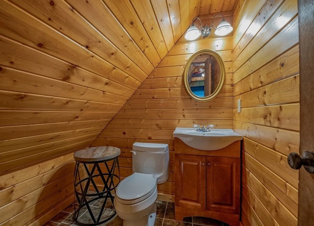 There are 3 bedrooms on the main floor and 1 full bath and a 1/2 bath as well. These rooms all have queen beds in them and give our guests who don't want to climb stairs the option of not having to while still being able to access the great rooms.