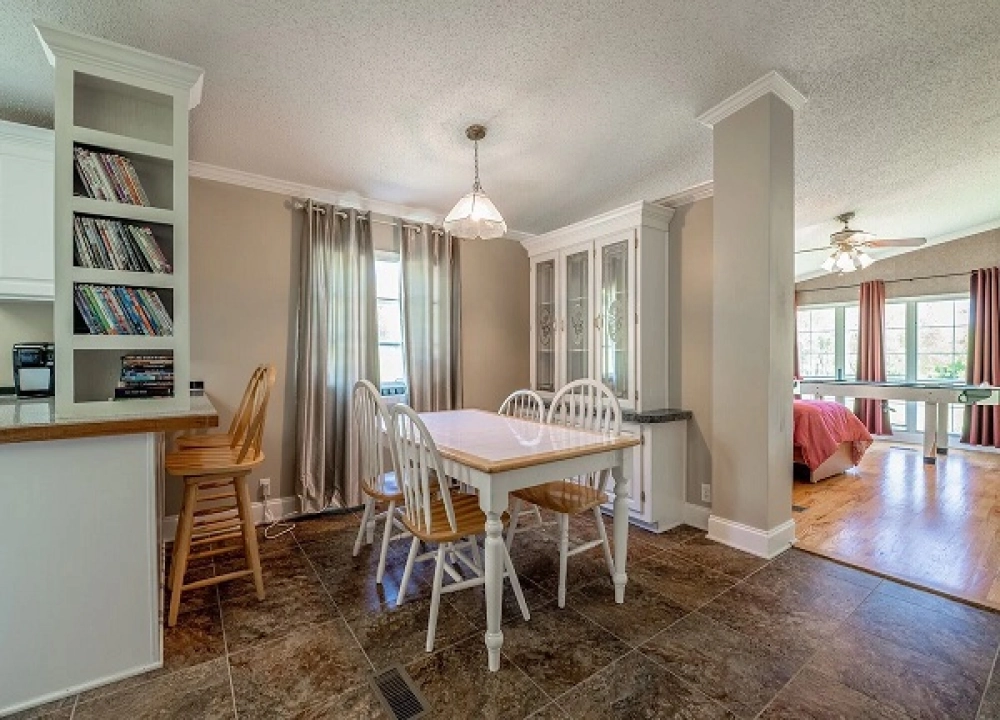 There are 3 acres of front yard space for kids to roam and play games as well as the woods to explore. Take a mile hike on the property that goes through the woods and across the lower pasture to Chickamauga Creek which is on the property. The creek is 30 feet wide and usually is only a few feet deep. The kids love to play in the creek and look for animals and their footprints. Also, searching for arrowheads is a popular endeavor around the creek as well.